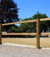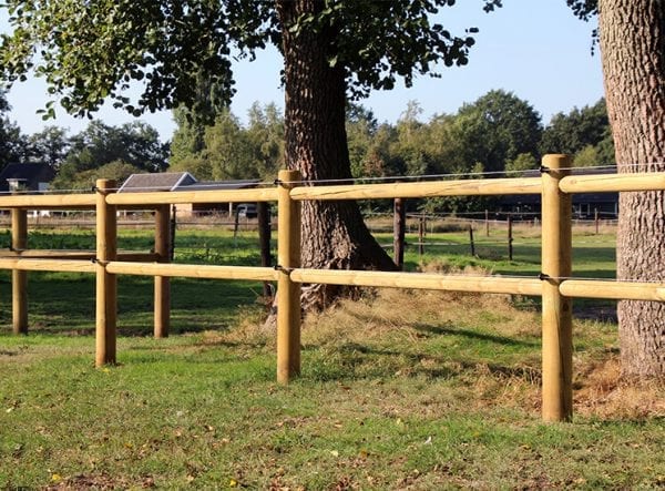 Clôture pour chevaux avec 2 lisses encastré en bois Tanalith-E. Cette clôture avec 3 lisses et encastré est très interessante par rapport sa durabilité et excellente rapport qualité-prix.